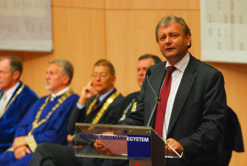 A miniszter beszédében a tradíció és a megújulás harmóniájának fontosságát hangsúlyozta, hozzátéve, hogy a Szegedi Tudományegyetema felsőoktatásmegújulásának egyik oszlopa Magyarországon.
