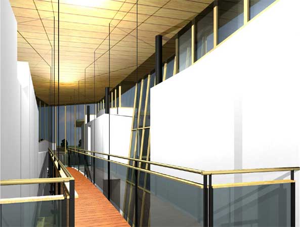 Az új létesítmény a különleges kialakítású aulatér köré szerveződik. Az épület bejáratánál egy lépcső után galéria indul a központi közlekedőből, mely a hosszanti tengelyen végigfutva egyes helyeken hídként, máshol folyosóként köti össze a termeket.